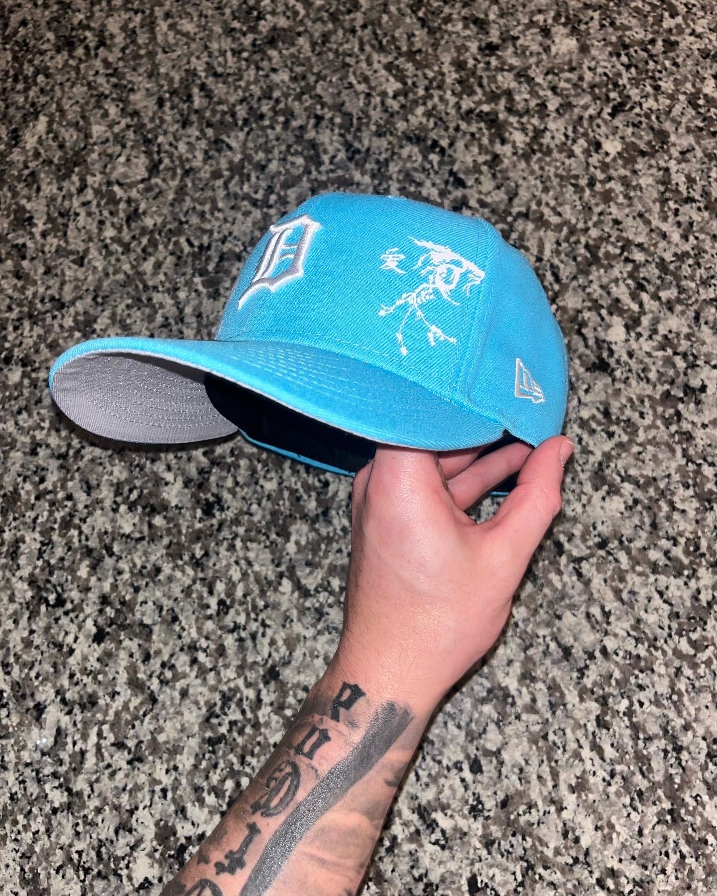 AQUA BLUE DETRIOT TIGERS CUSTOM FITTED CAP