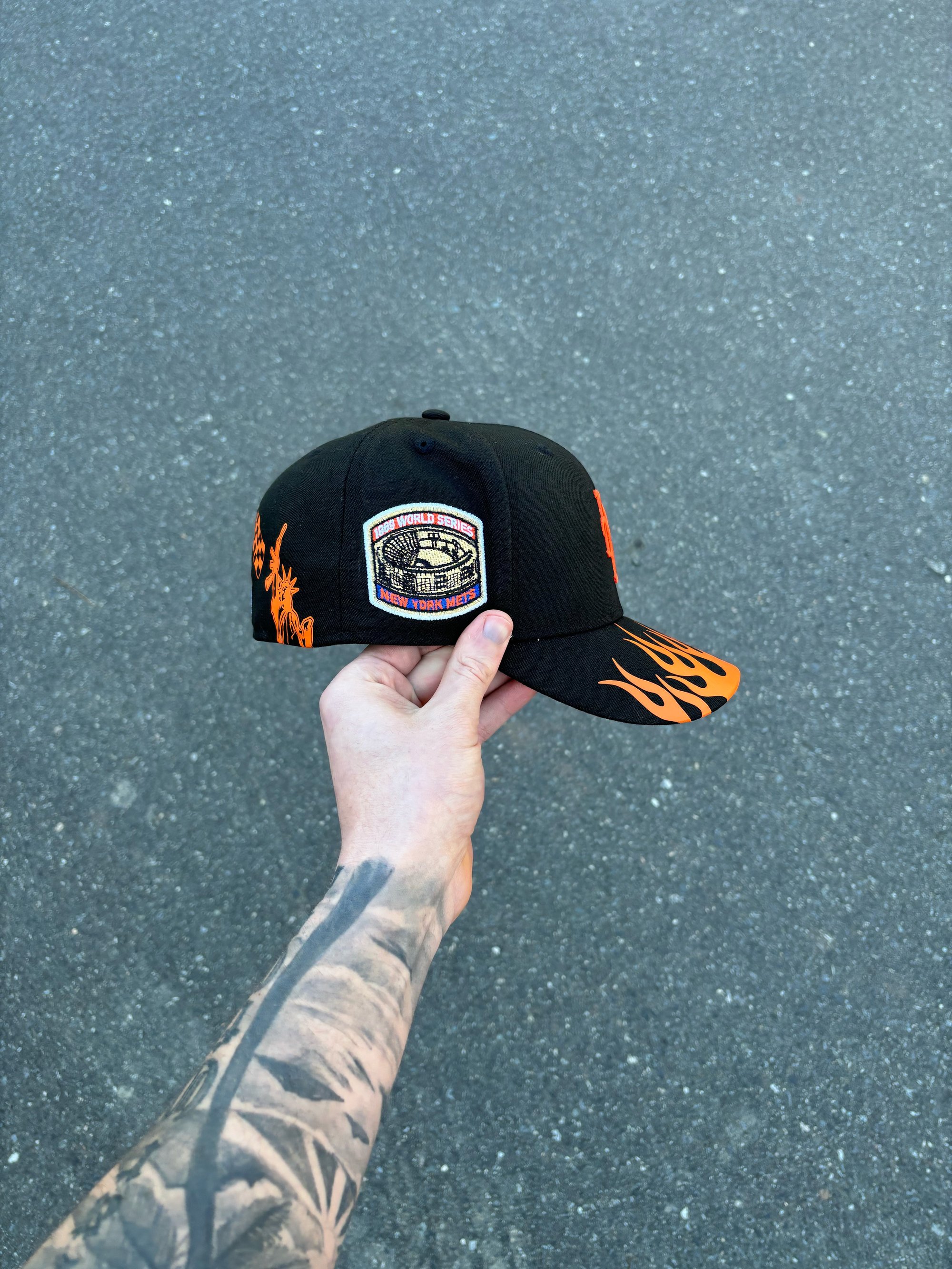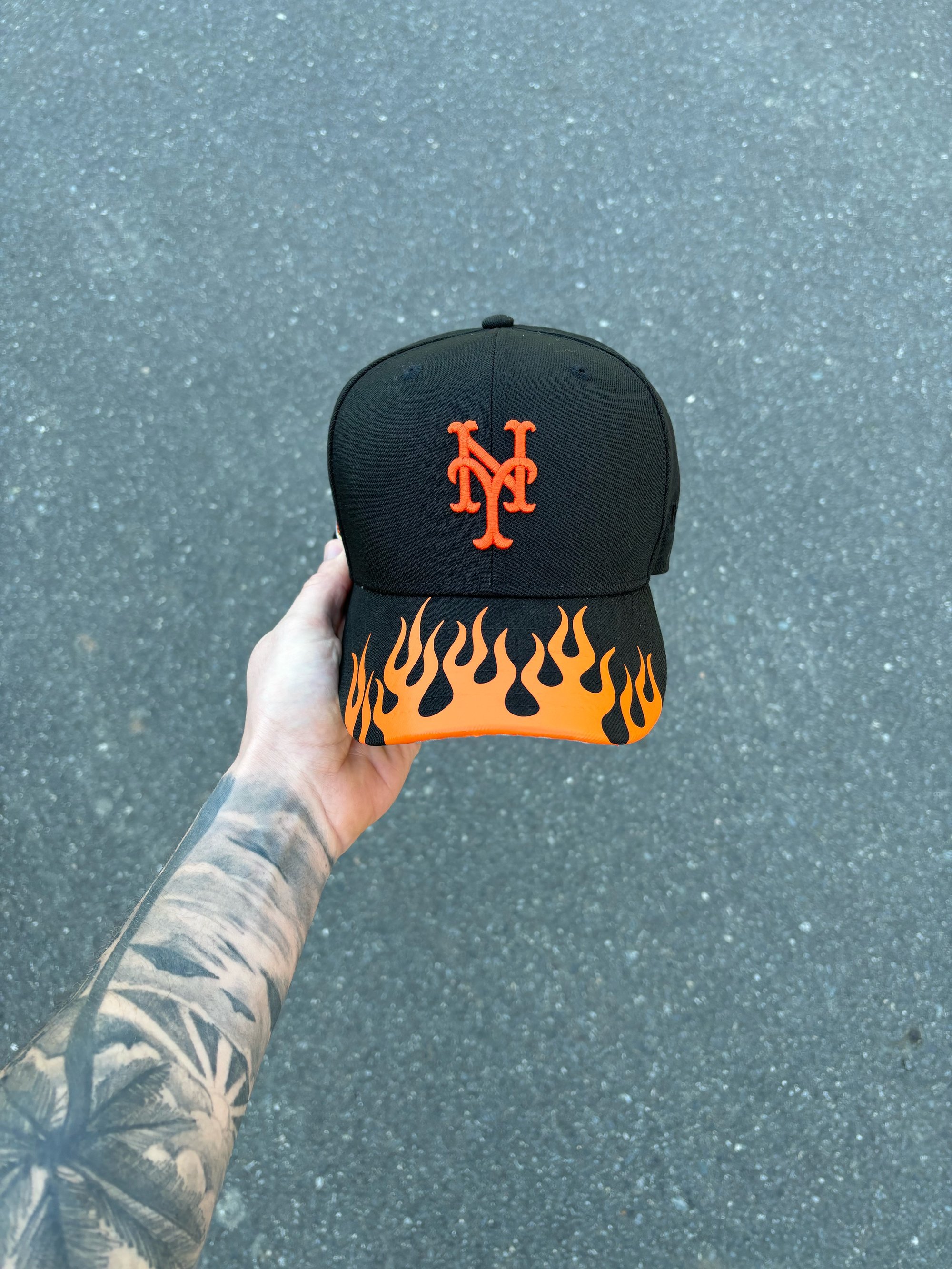 BLACK FLAMING ASPHALT NEW YORK METS CUSTOM FITTED CAP