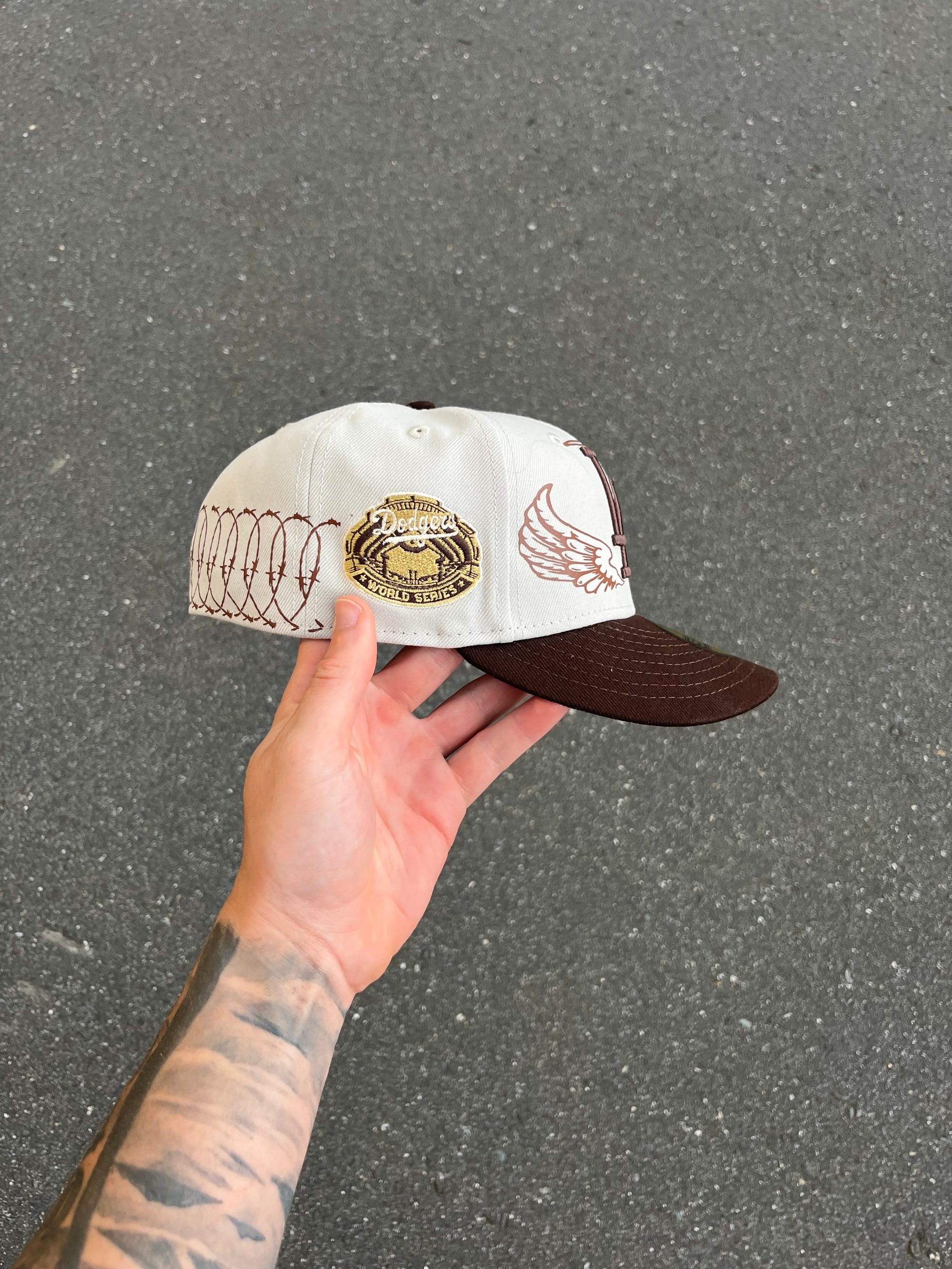 BURGUNDY BRIM OFF WHITE TWO TONE LA DODGERS CUSTOM FITTED CAP