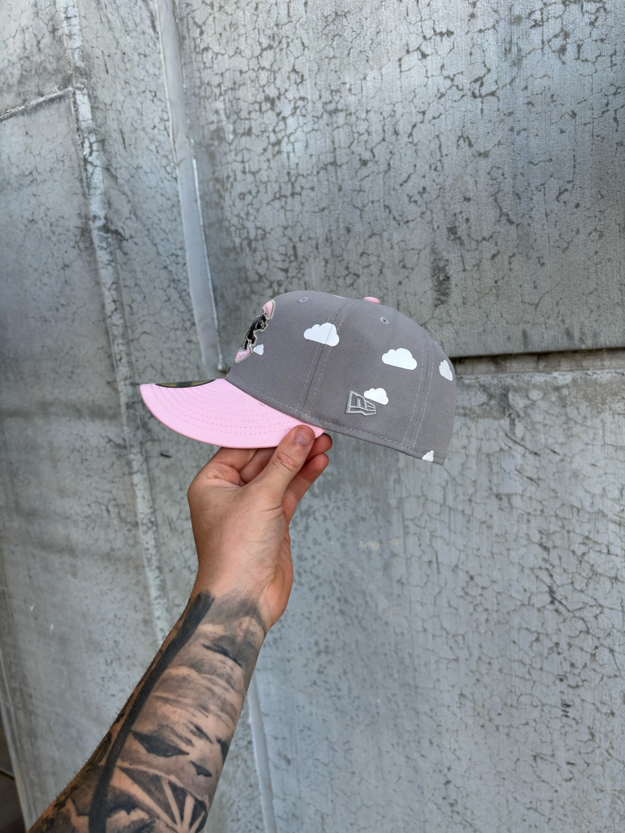 GRAY PARTLY CLOUDY PINK VISOR CHICAGO CUBS CUSTOM FITTED CAP