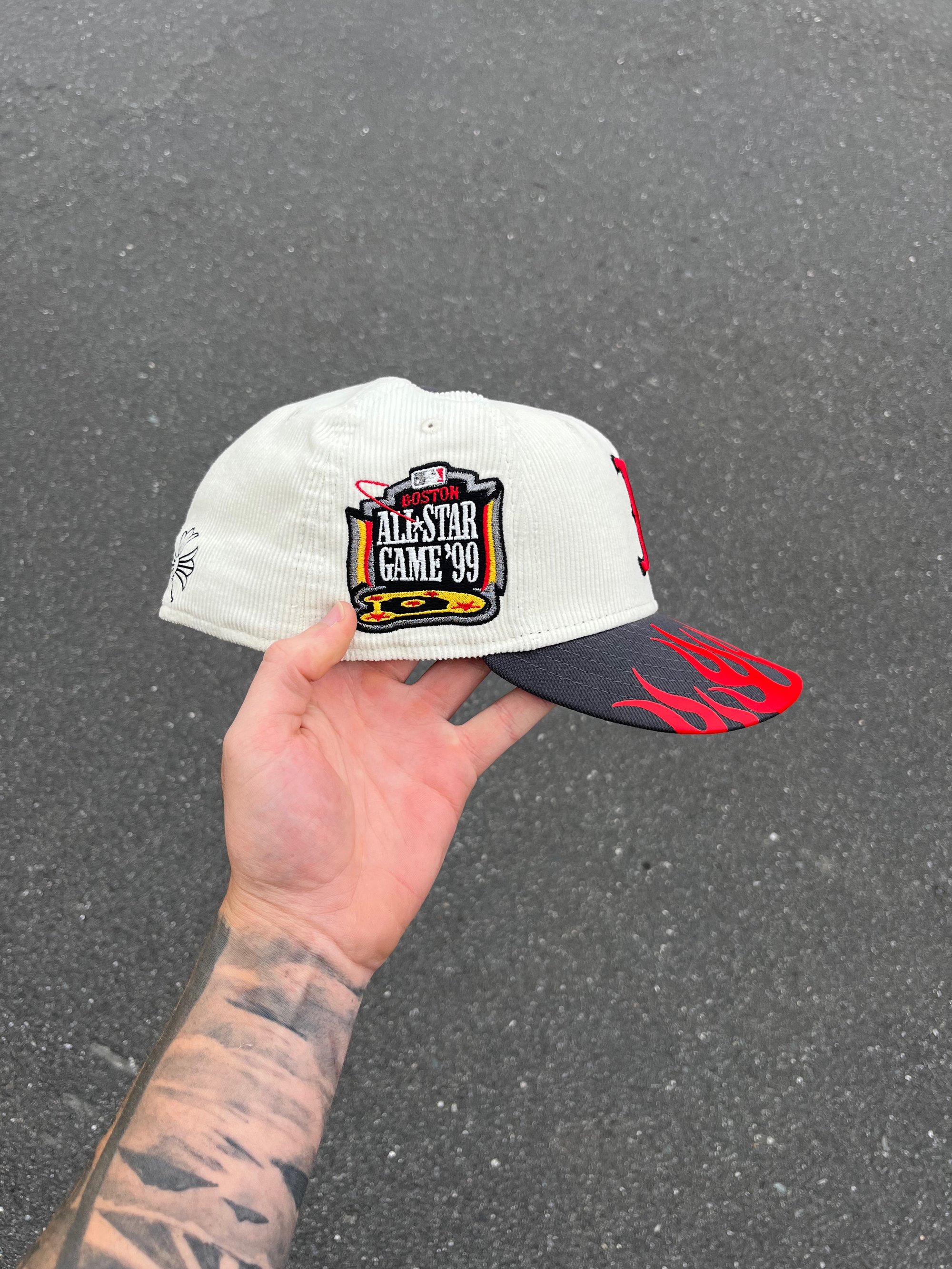 GREY BRIM CORDUROY TRI TONE BOSTON RED SOX CUSTOM FITTED CAP