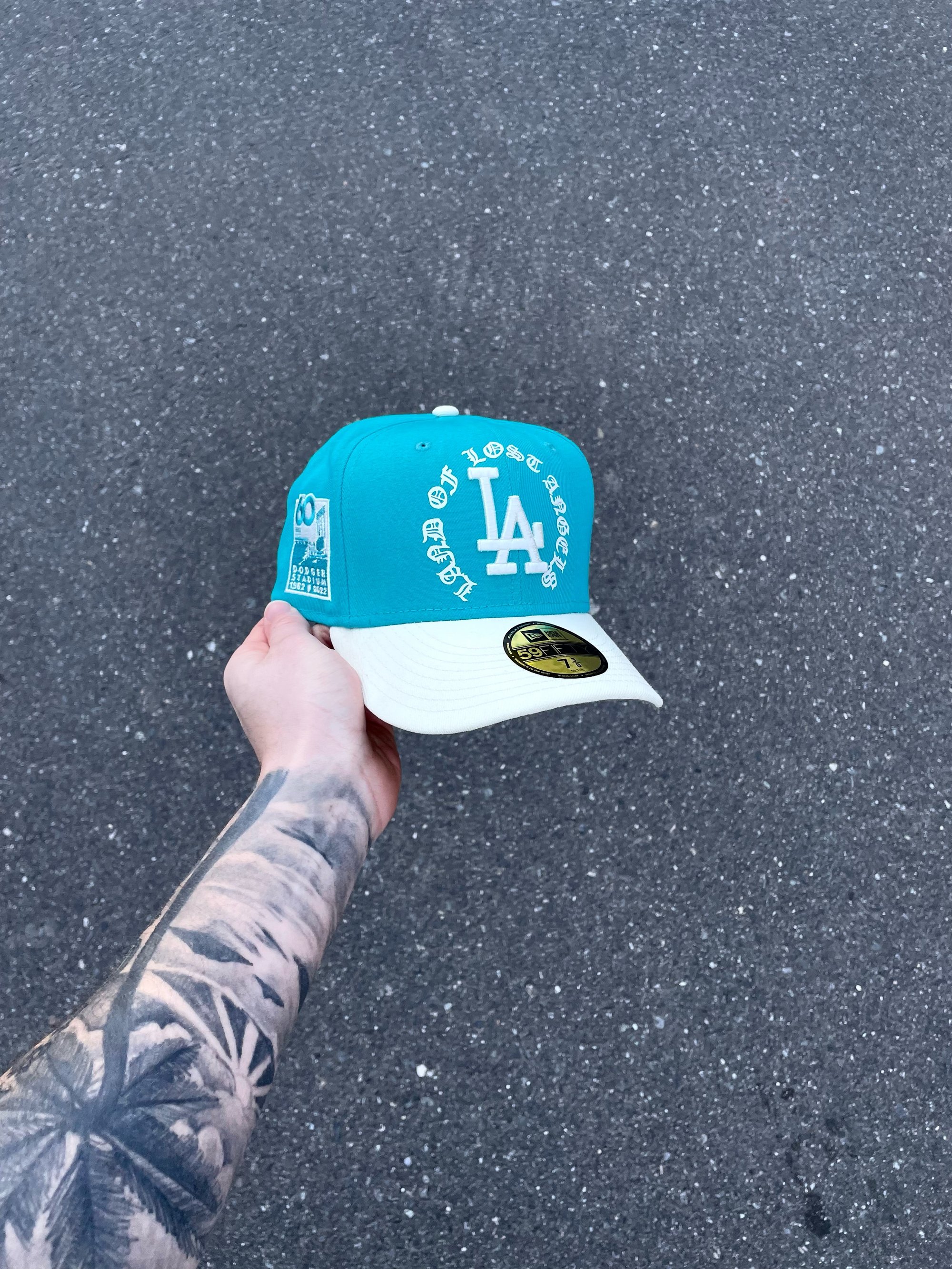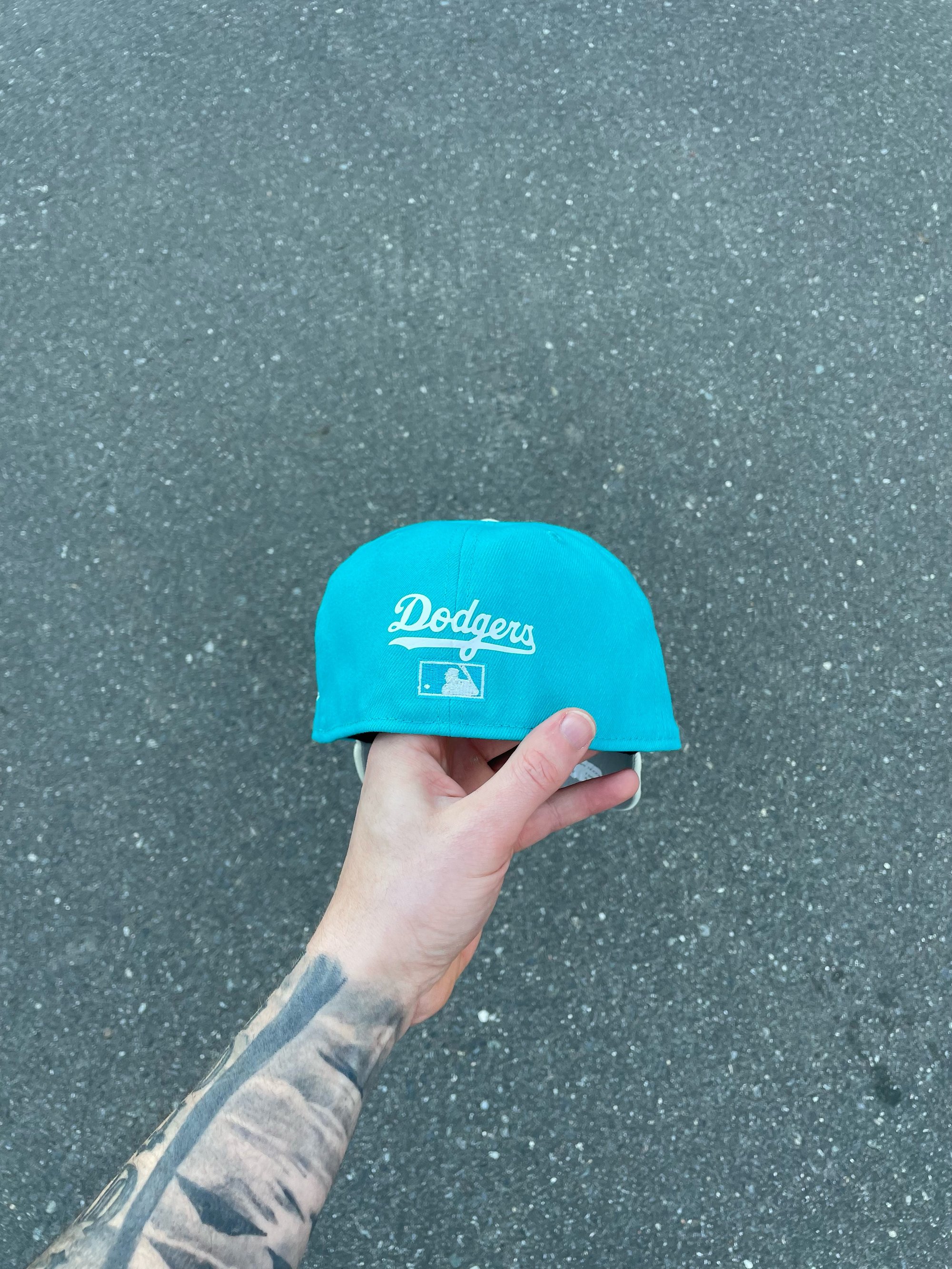 GREY BRIM STONE AQUA LOS ANGELES DODGERS CUSTOM FITTED CAP