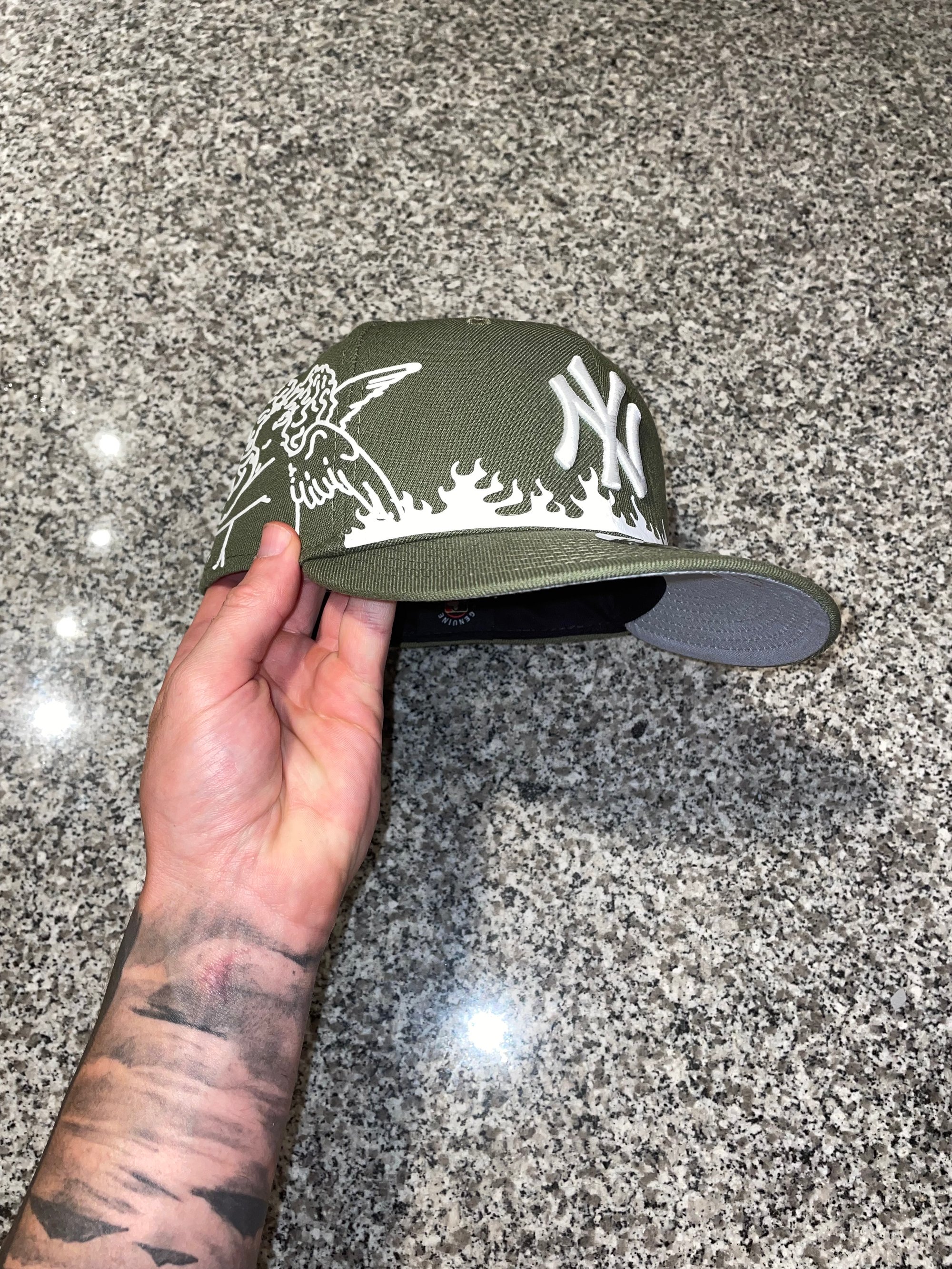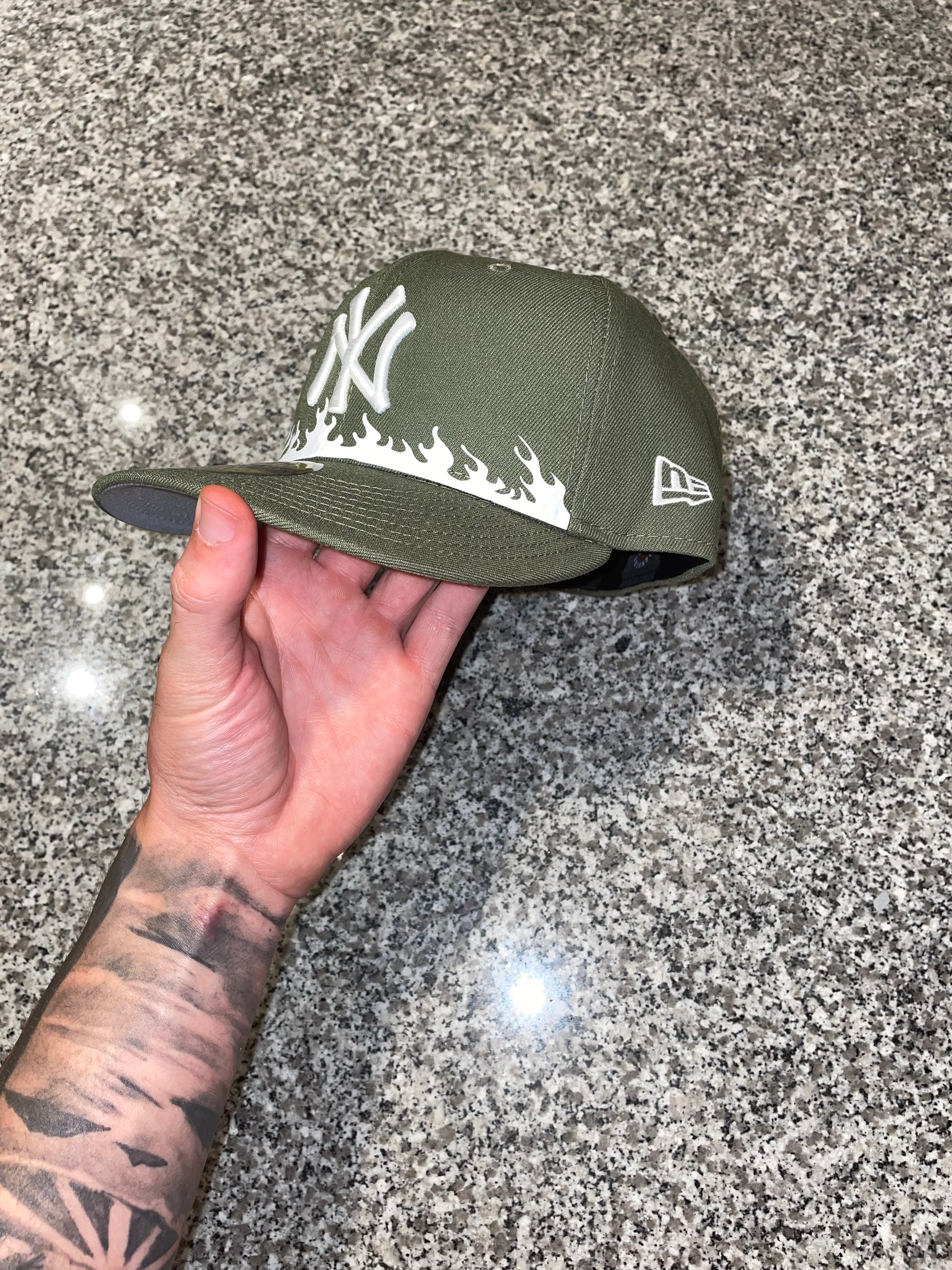 OLIVE GREEN ANGELIC FLAME NY CUSTOM FITTED CAP