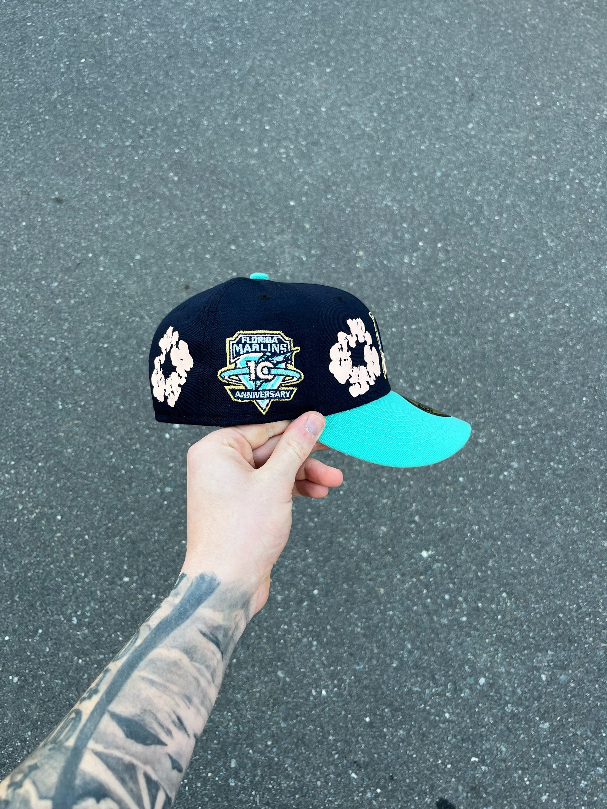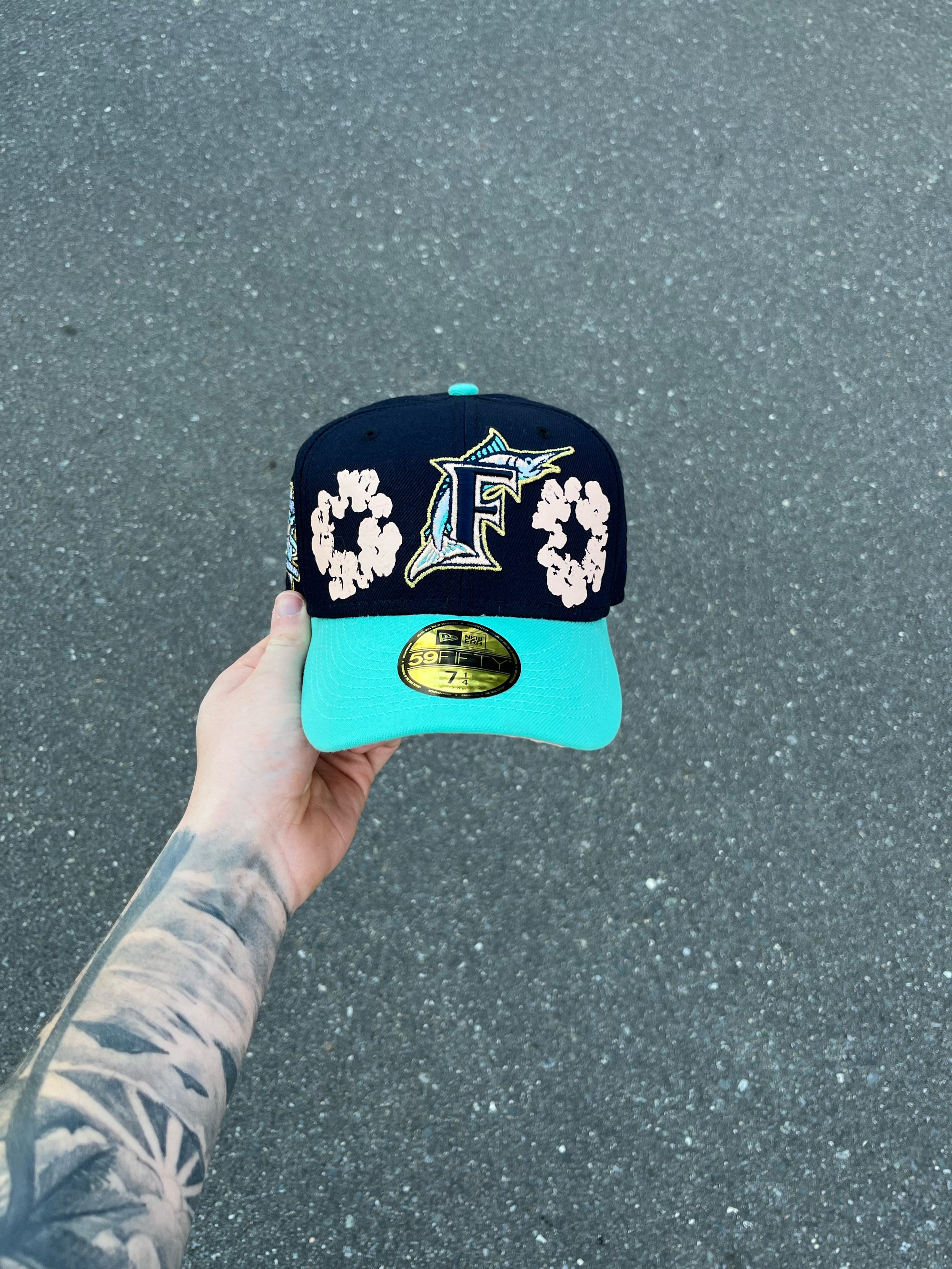 PEACH BRIM TRI TONE MIAMI MARLINS CUSTOM FITTED CAP