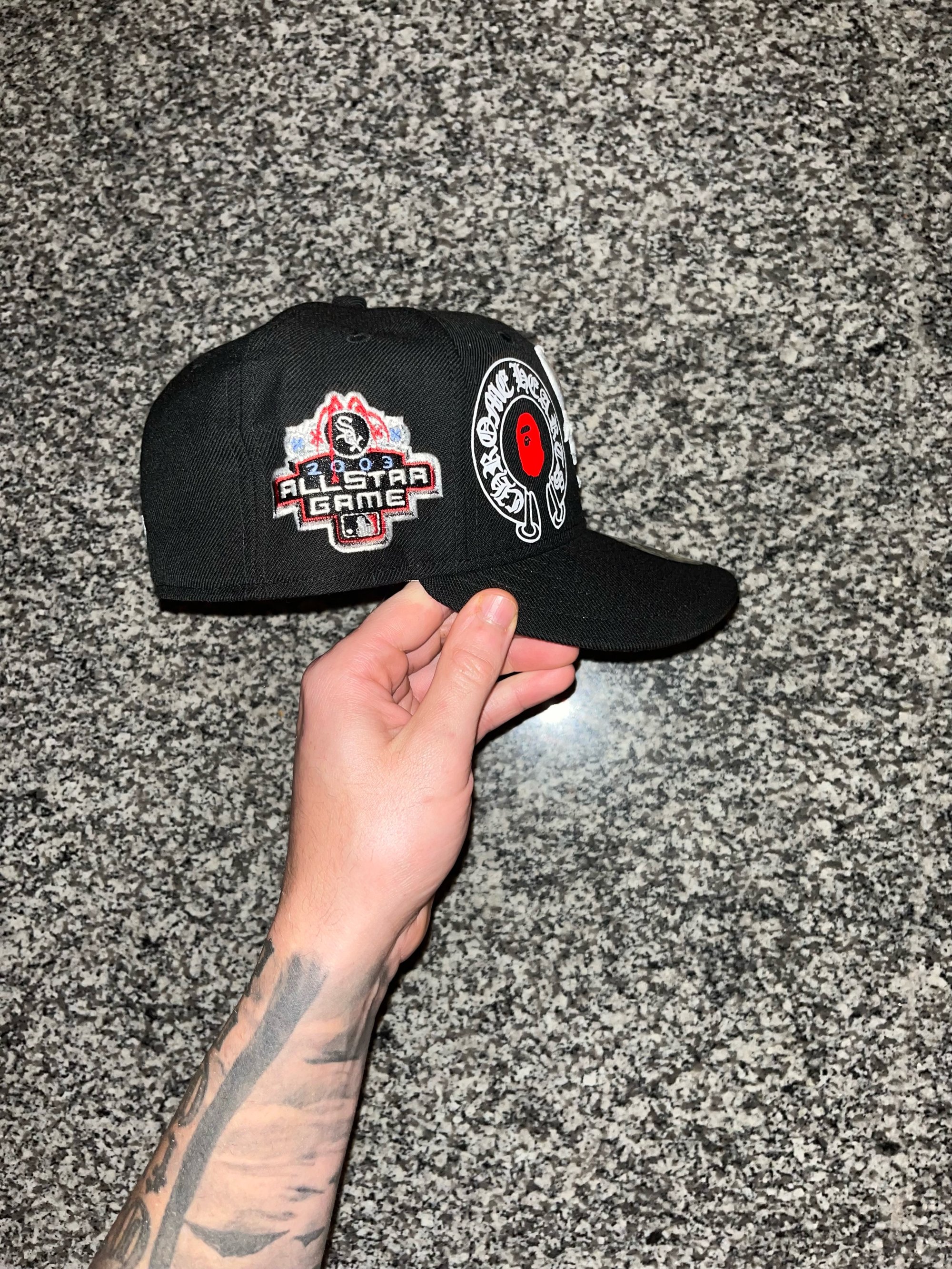 RED BRIM BLACK WHITE SOX CUSTOM FITTED CAP