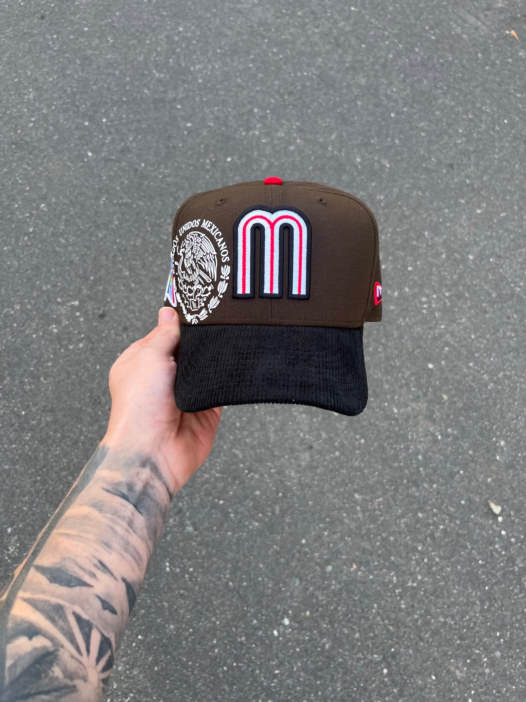 RED BRIM CORDUROY CHOCOLATE ESTADOS UNIDOS MEXICANOS CUSTOM FITTED CAP