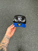 TRI TONE BLACK BLUE NEW YORK YANKEES CUSTOM FITTED CAP