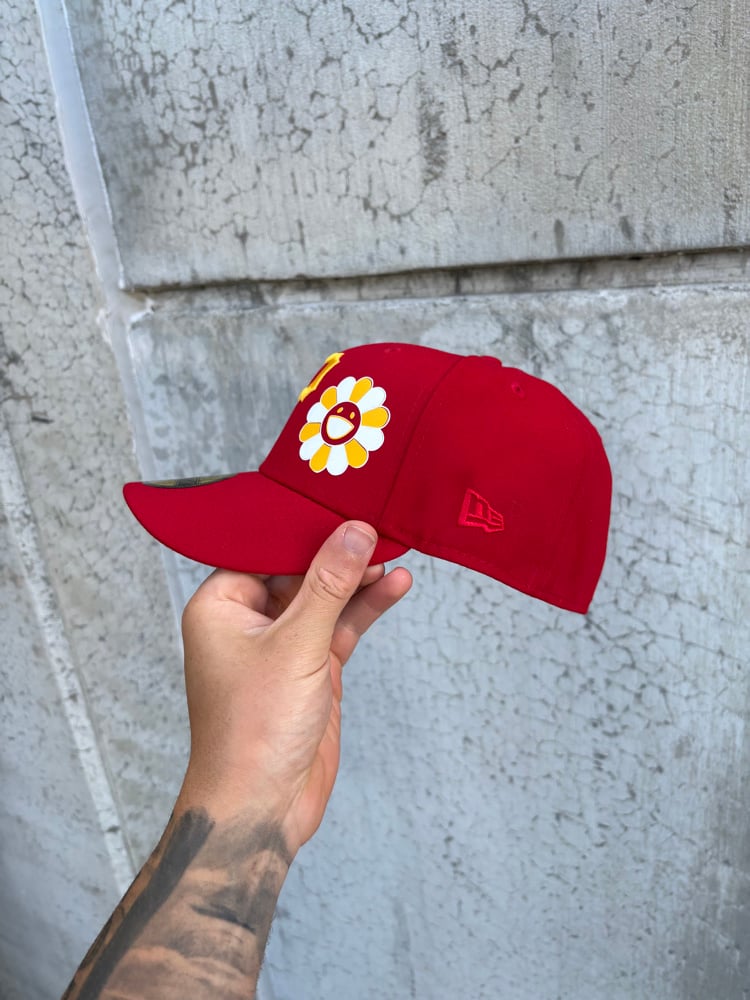 YELLOW ON RED PITTSBURGH PIRATES CUSTOM FITTED CAP